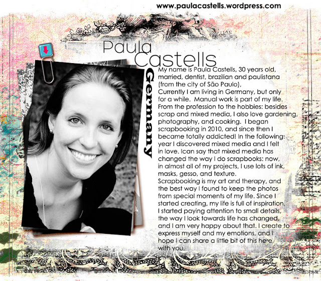 O ano passado eu comecei scrapbooking muito mais. Eu amo usar rendas, tecidos gesso, e muitas flores. A maioria das minhas páginas são sobre o meu cãozinho. Não temos filhos e eu devo dizer que o cão é bem treinado ... lol ... um dia eu acho!